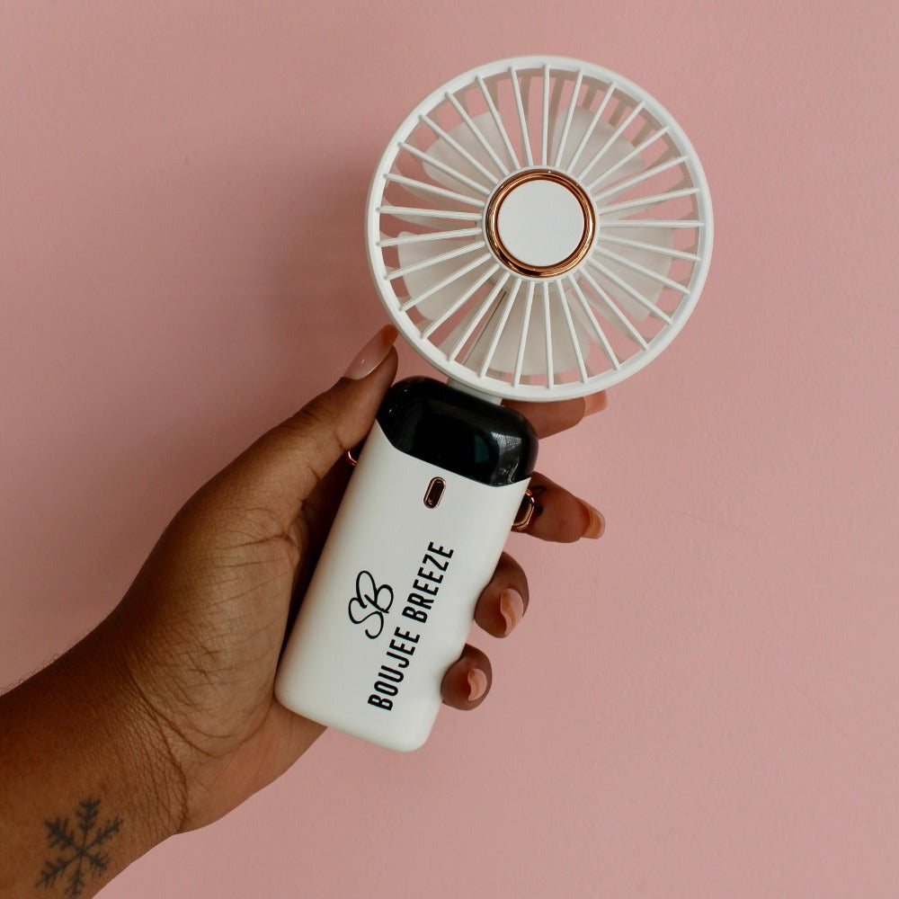 A Boujee Babe MUST HAVE! Introducing Boujee Breeze, our versatile and ultra-portable Handheld Fan – the ultimate companion for staying cool on the go! Beat the heat in style with this multifunctional gadget that seamlessly blends functionality and convenience.