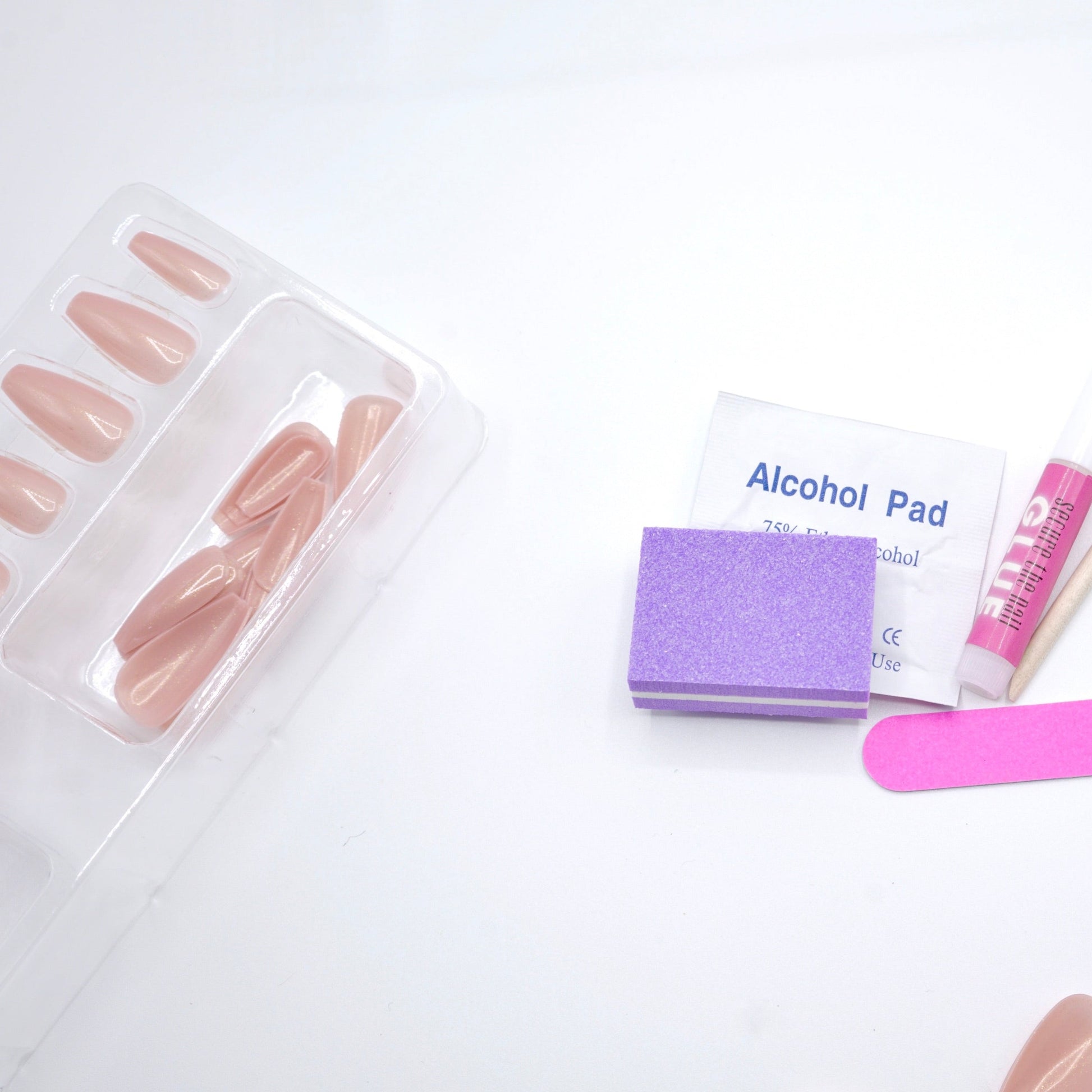 This press on nail set comes with 28 salon quality nails, nail glue, nail file, cuticle pusher and an alcohol pad. All you need to apply your nails with ease.