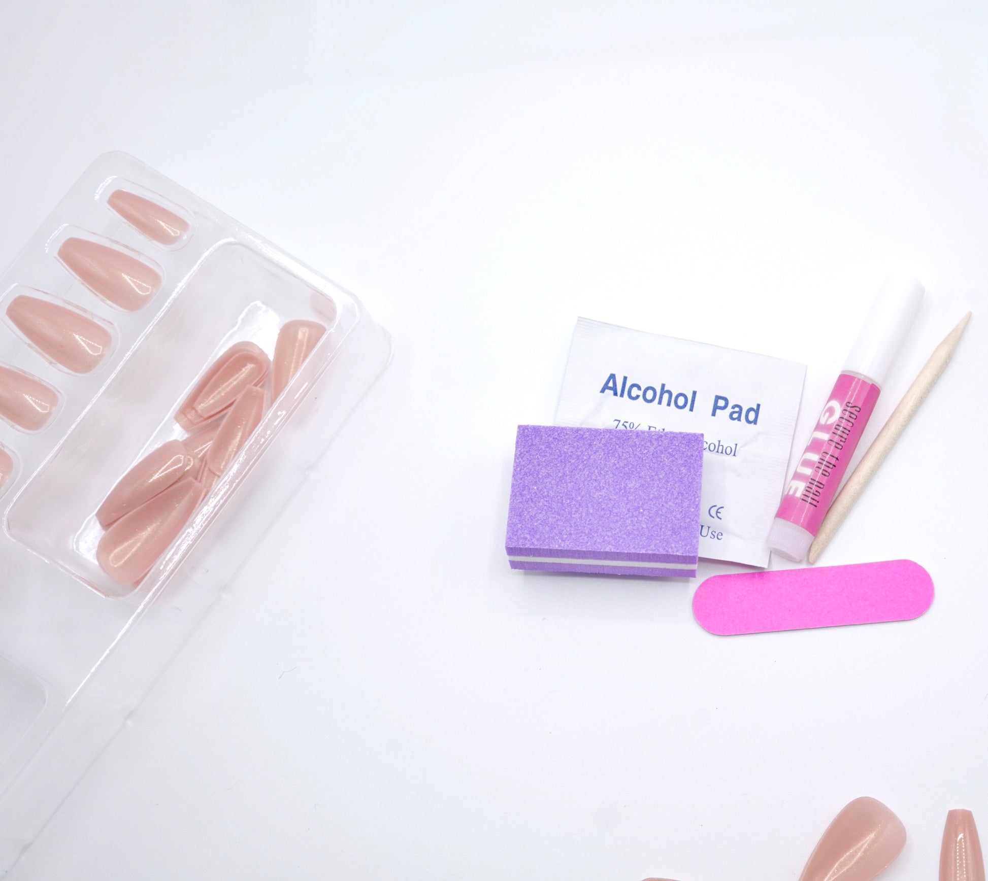 This press on nail set comes with 28 salon quality nails, nail glue, nail file, cuticle pusher and an alcohol pad. All you need to apply your nails with ease.