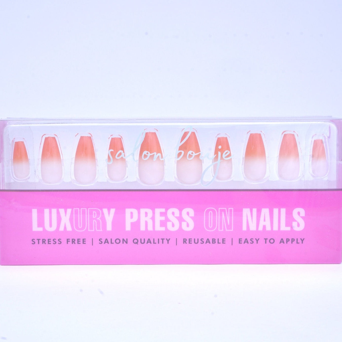 This press on nail set comes with 28 salon quality nails, nail glue, nail file, cuticle pusher and an alcohol pad. All you need to apply your nails with ease.