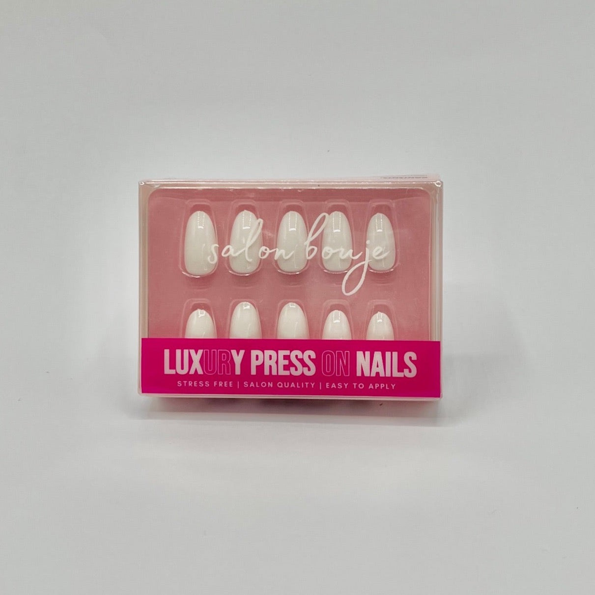 This press on nail set comes with 28 salon quality nails, nail glue, nail file, cuticle pusher and an alcohol pad. All you need to apply your nails with ease.